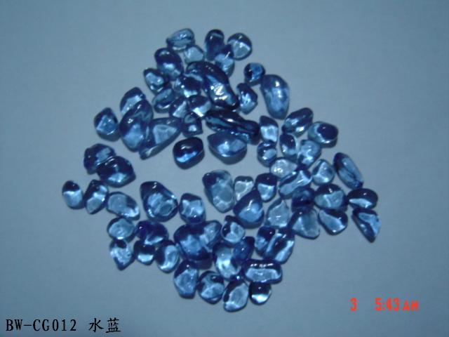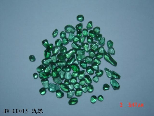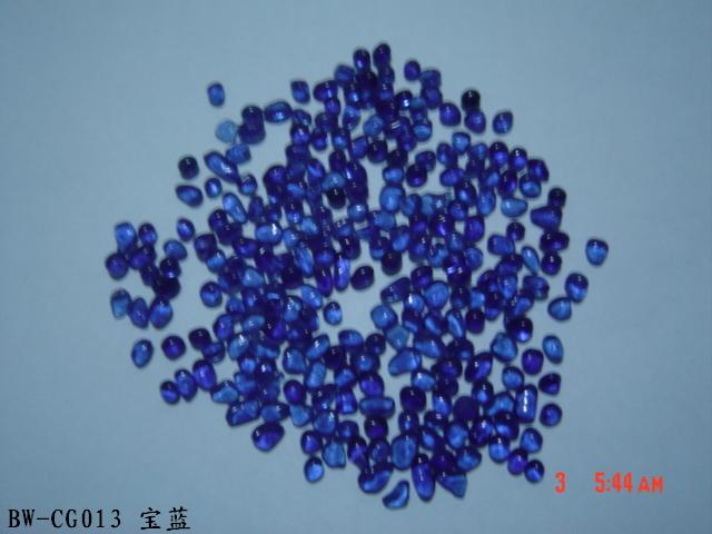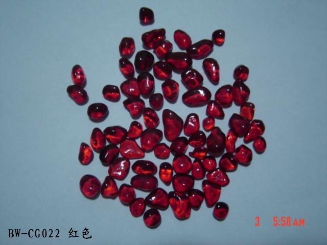 Irregular Color Glass Beads Color glass bead /Glass Grit/Cullet/Fire glass is a new kind of material for deluxe decoration. This Kind of beads are made of glass powder in different colors. It is used in the kitchen counter-tops, Terrazzo, Landscaping, aquariums, fire pits, exterior walls decoration, courtyards, footpaths and swimming pools.It will be dazzling and resplendent when the sunlight or lamplight is shining on it. We have more than 30 kinds of colors.