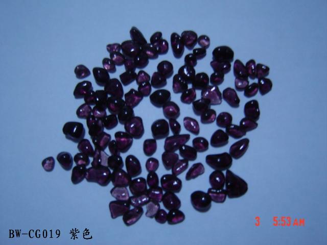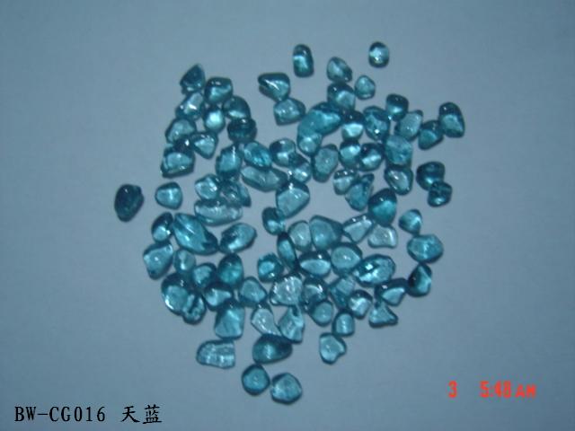Irregular Color Glass Beads Color glass bead /Glass Grit/Cullet/Fire glass is a new kind of material for deluxe decoration. This Kind of beads are made of glass powder in different colors. It is used in the kitchen counter-tops, Terrazzo, Landscaping, aquariums, fire pits, exterior walls decoration, courtyards, footpaths and swimming pools.It will be dazzling and resplendent when the sunlight or lamplight is shining on it. We have more than 30 kinds of colors.